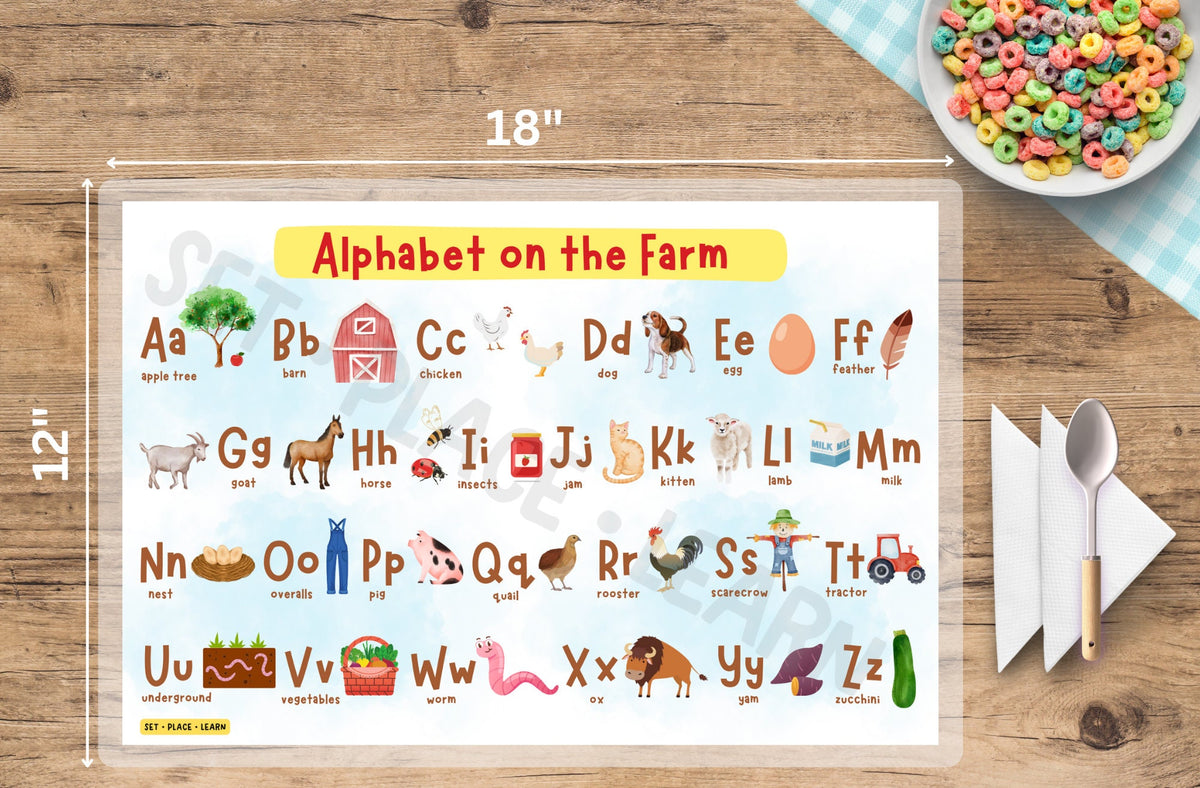 Farm Adventure Alphabet Placemat: Kids Learning Activity