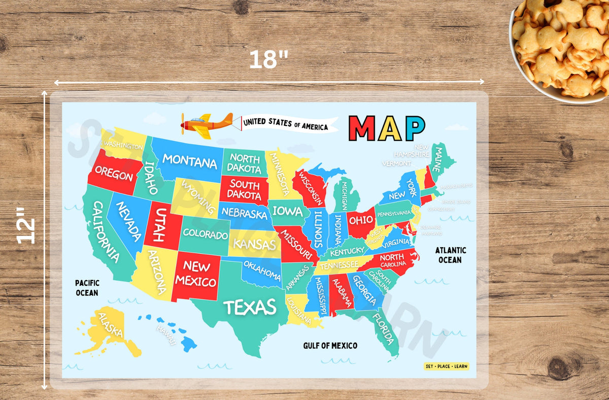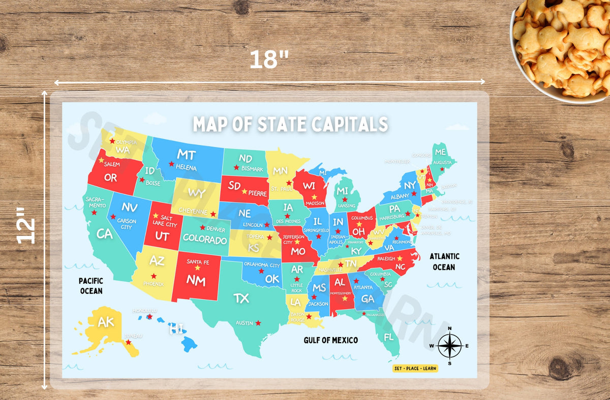 USA Map Placemat for Kids: States & Capitals Learning Gift
